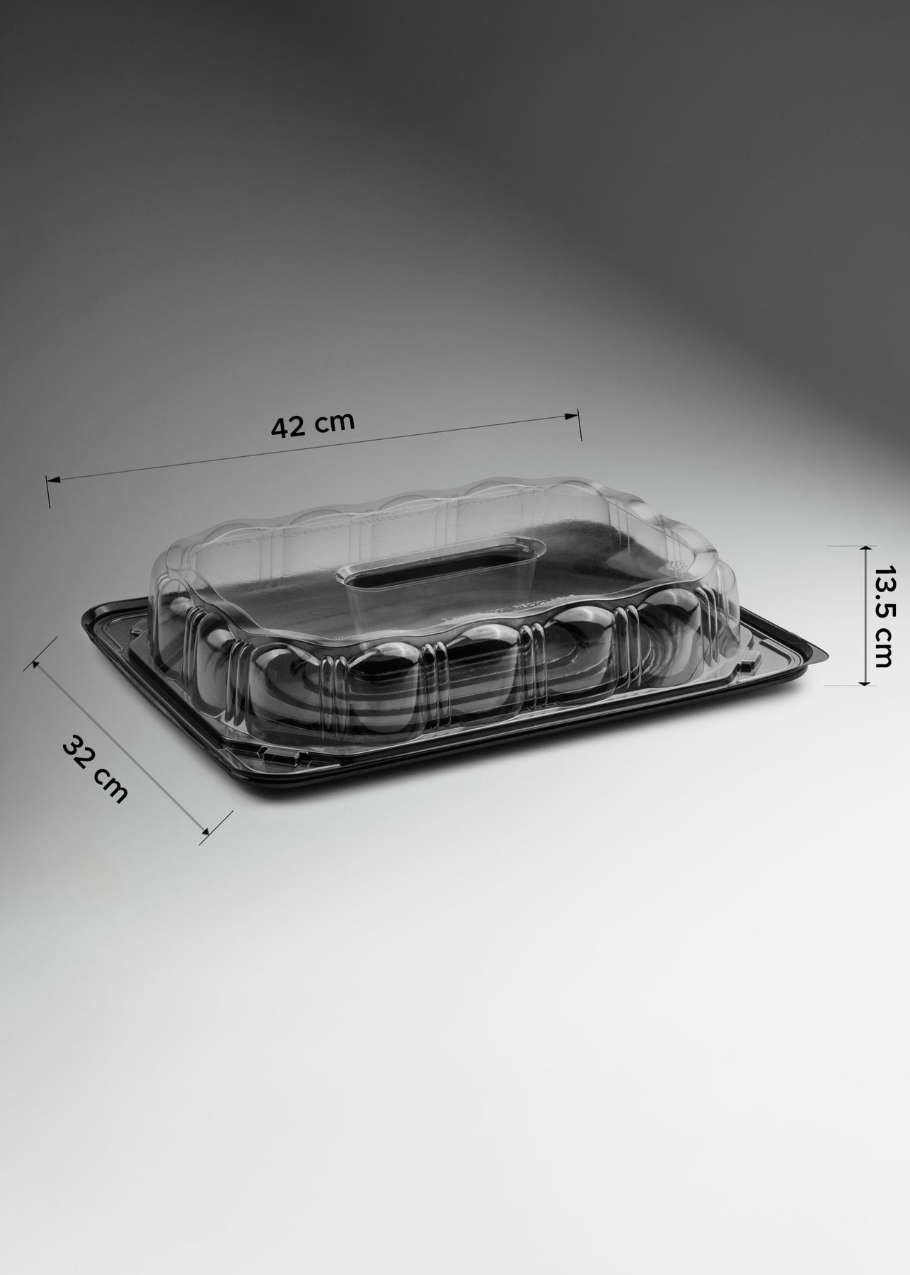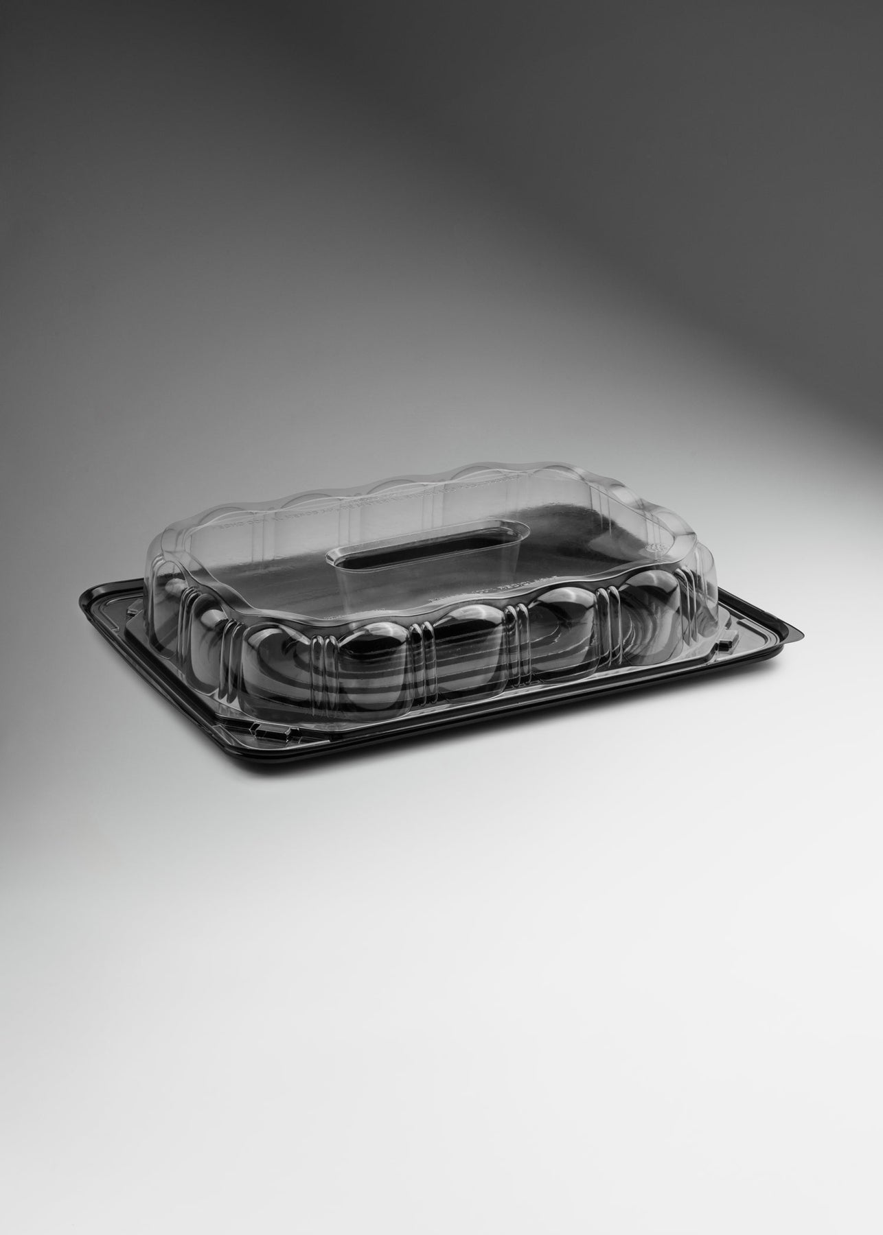 Domo de PET con tapa transparente base negra para rosca de reyes 1/2 kg