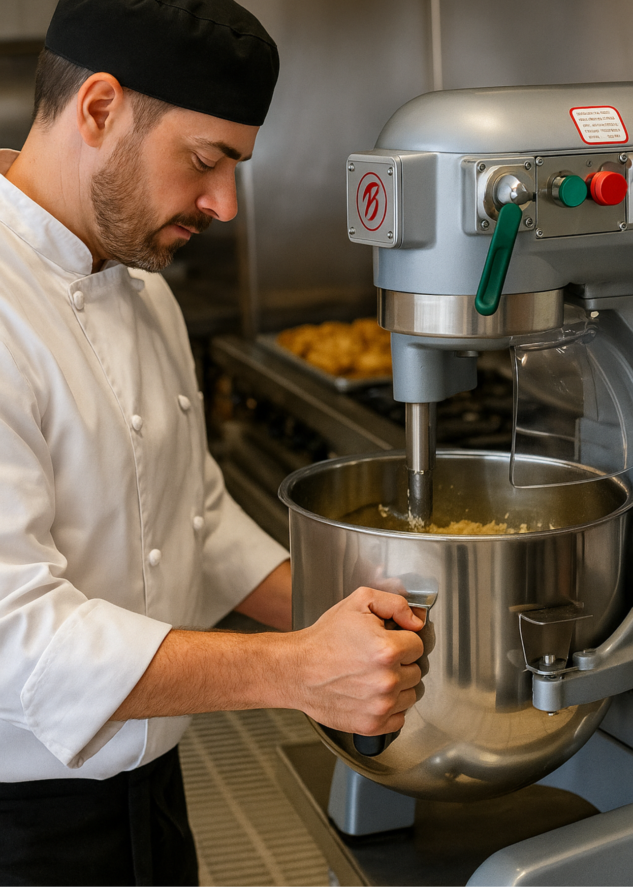 Potente, segura y diseñada para el alto rendimiento, esta batidora industrial de 20 litros es ideal para panaderías, cocinas profesionales y negocios de repostería que requieren equipos confiables y versátiles. Su estructura robusta de acero inoxidable garantiza una larga vida útil y un excelente desempeño bajo uso intensivo.