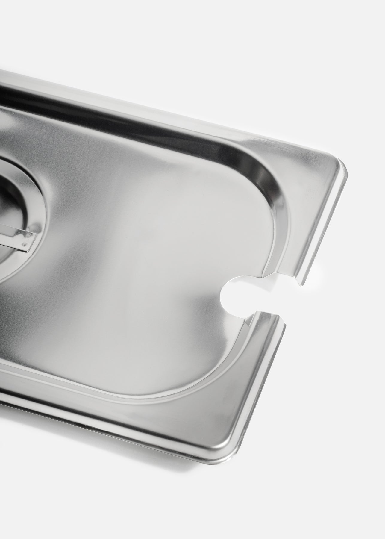 Su diseño funcional con ranura lateral permite el uso de cucharones o pinzas sin necesidad de retirar la tapa, optimizando el servicio y reduciendo el desperdicio de calor. Ideal para estaciones de buffet, cocinas industriales o líneas de autoservicio.
