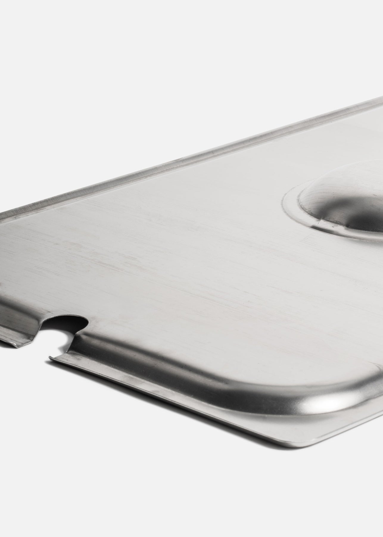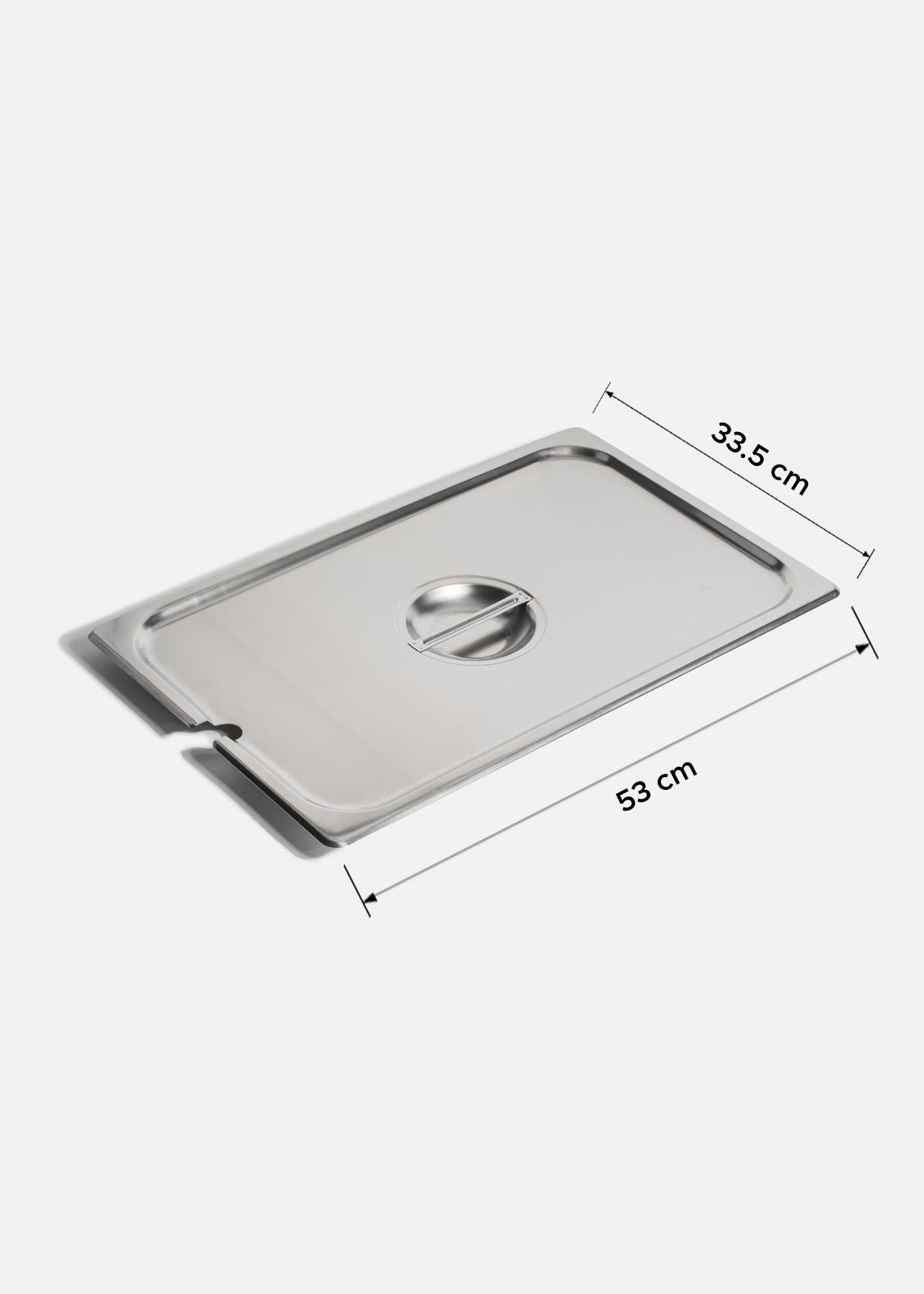 La tapa de acero inoxidable es el complemento ideal para mantener tus preparaciones siempre frescas, calientes y seguras en entornos profesionales como cocinas de restaurantes, buffets y servicios de catering. Diseñada con un práctico ranurado para cucharón, permite un servicio continuo sin necesidad de retirar la tapa completamente.