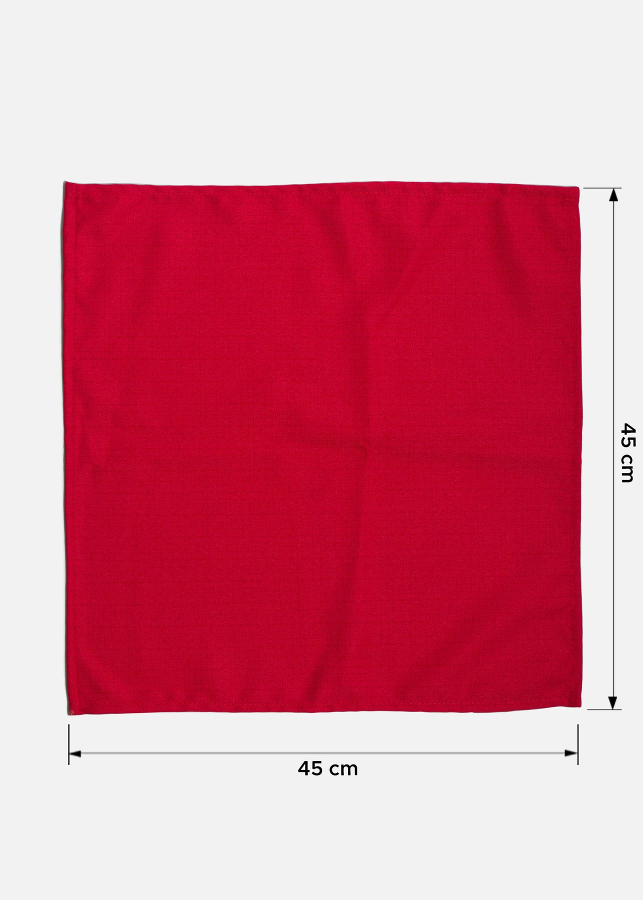 Estas servilletas elegantes destacan por su tono rojo vibrante y su acabado con bastilla fina, que aporta un detalle sofisticado y duradero. Su tamaño de 45x45 cm permite realizar distintos tipos de dobleces decorativos, adaptándose fácilmente a diferentes estilos de montaje.