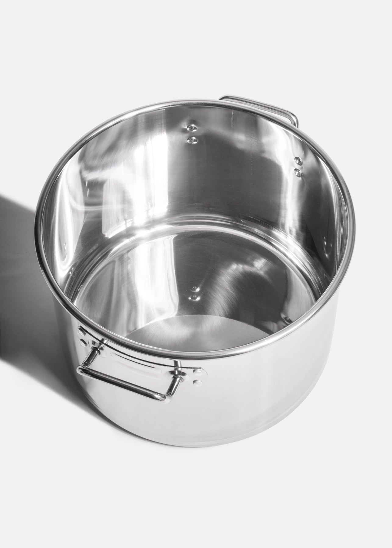 Apta para lavavajillas, su limpieza es práctica y rápida, mientras que la tapa incluida permite conservar mejor el calor y los sabores en cada cocción. Con su capacidad de 20.5 litros, es una pieza imprescindible para preparar caldos, sopas, pastas o guisos en gran escala.