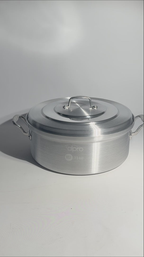 La budinera de aluminio de 40 L está diseñada para cocinas profesionales que requieren capacidad, resistencia y seguridad en cada preparación. Fabricada en aluminio grado alimenticio triple fuerte, distribuye el calor de manera uniforme y ofrece un rendimiento confiable incluso en jornadas de uso continuo. Su tapa del mismo material ayuda a conservar la temperatura y la humedad, ideal para cocciones prolongadas.