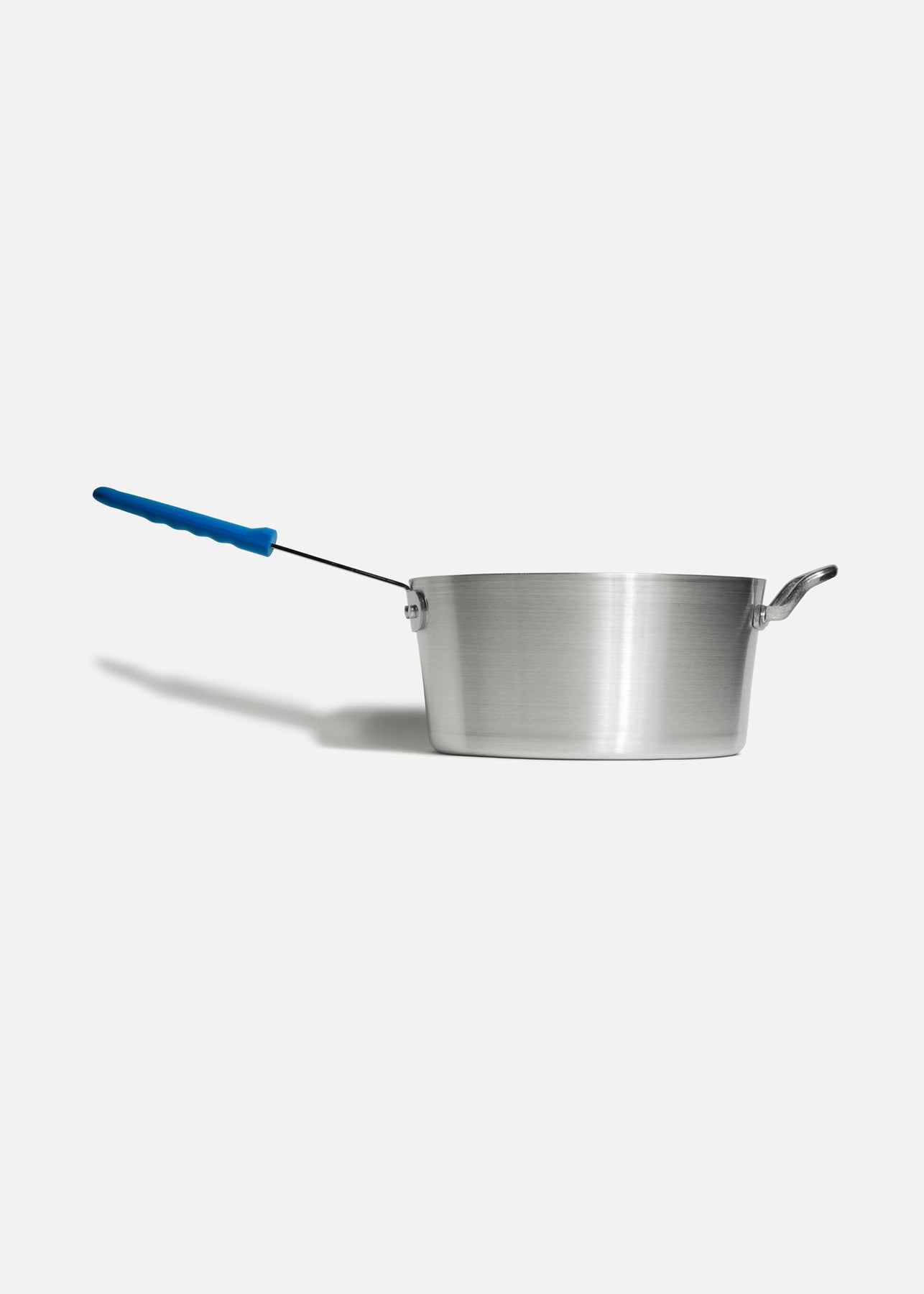 Equipada con una agarradera de acero inoxidable con goma en color azul esta cacerola de aluminio, proporciona un agarre firme, cómodo y seguro, incluso cuando el utensilio está caliente. Es apta para lavavajillas, libre de plomo y libre de BPA, lo que la hace ideal para cocinas seguras e higiénicas. Además, su certificación NSF avala su calidad profesional y durabilidad, siendo una opción confiable para cocinas industriales, hoteles y restaurantes que buscan herramientas resistentes y de alto desempeño.