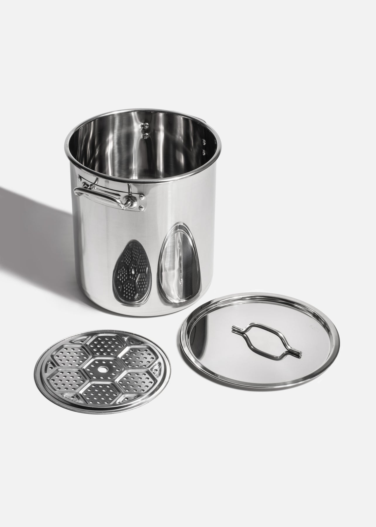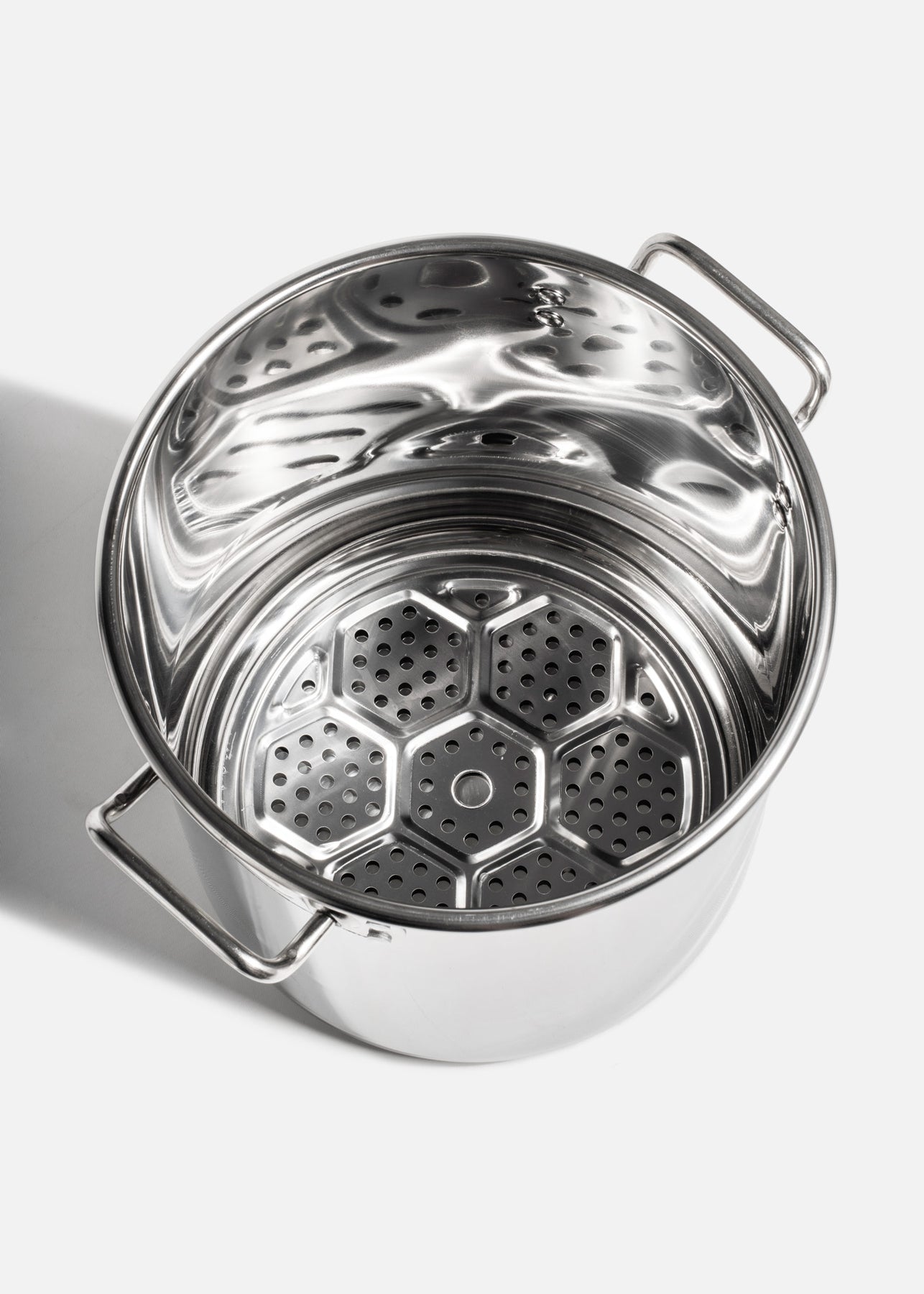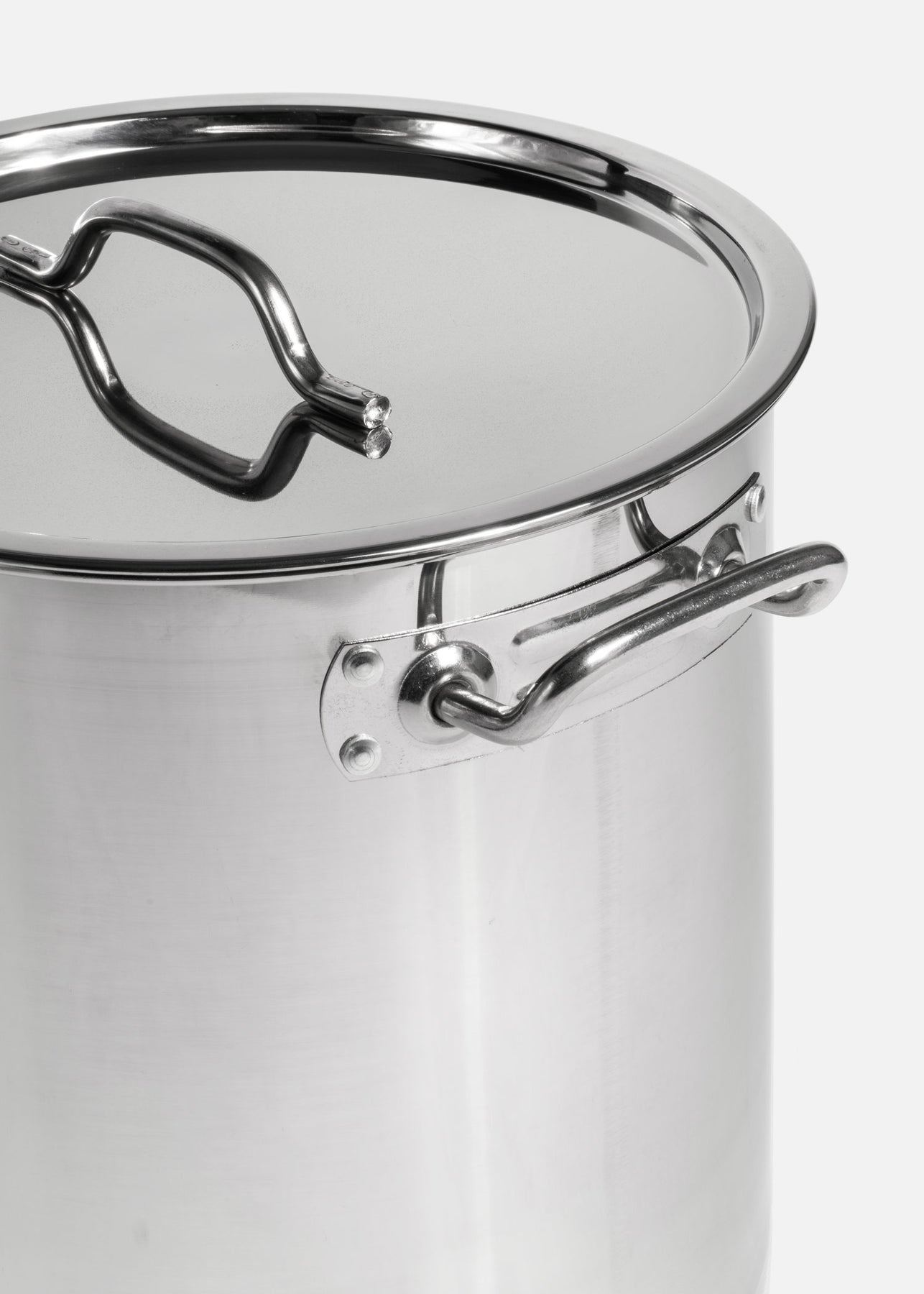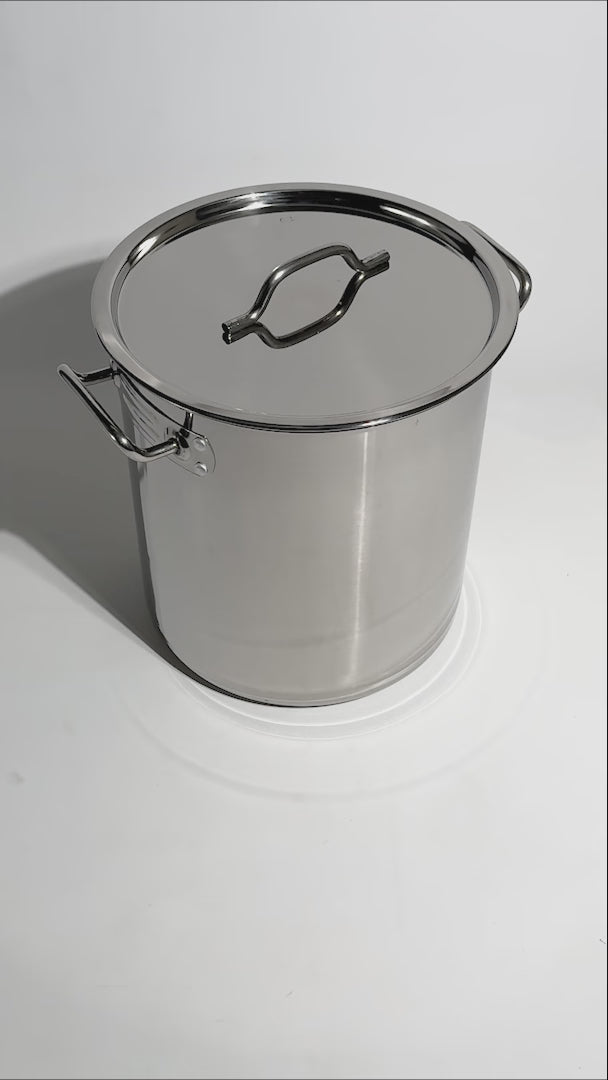 La olla con tapa de 20.8 L es una opción resistente y funcional para preparar alimentos en grandes cantidades, en cocinas profesionales. Su acabado en color plata realza su diseño elegante y práctico, mientras que su capacidad la convierte en un utensilio ideal para caldos, sopas, guisos o pastas.