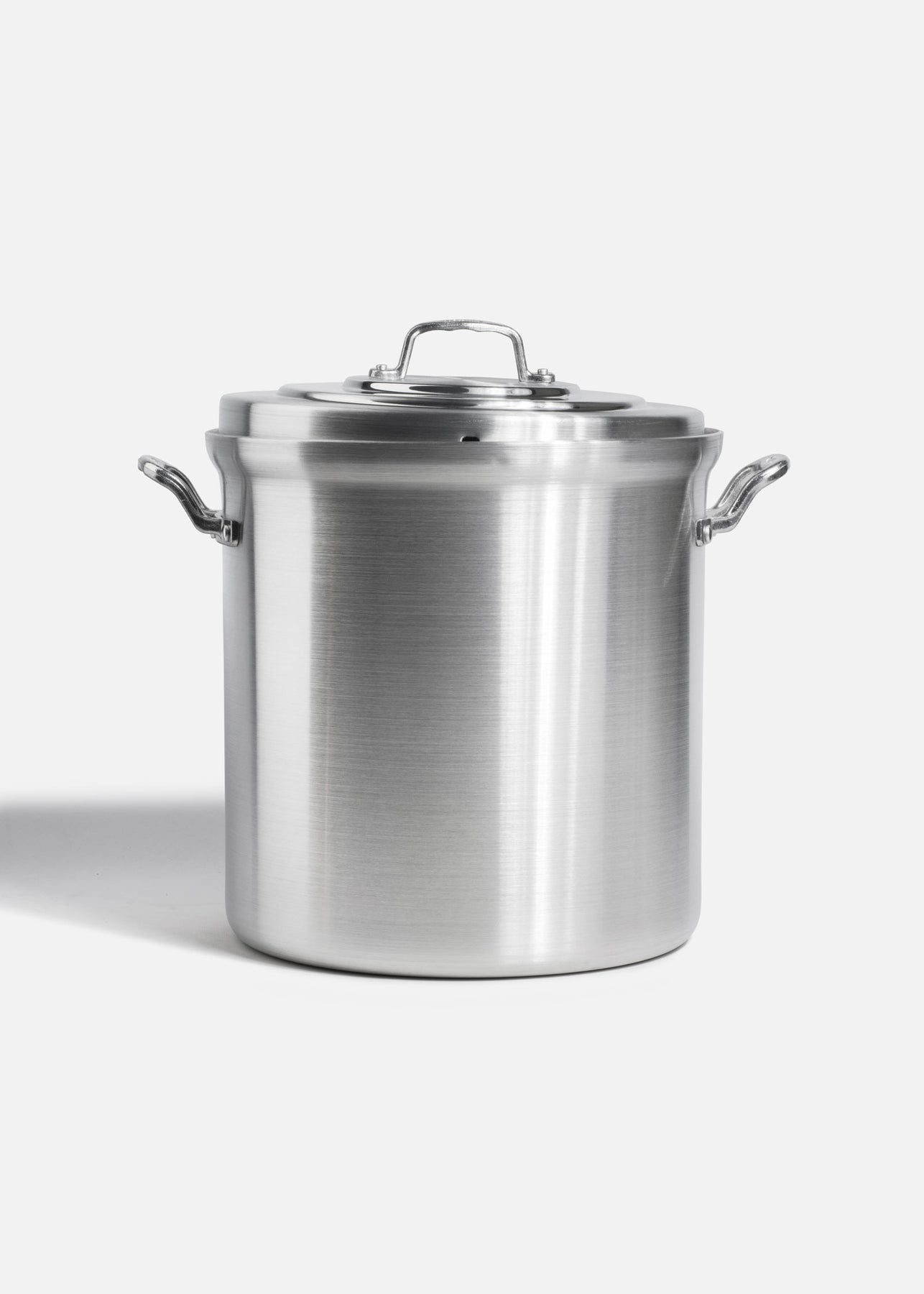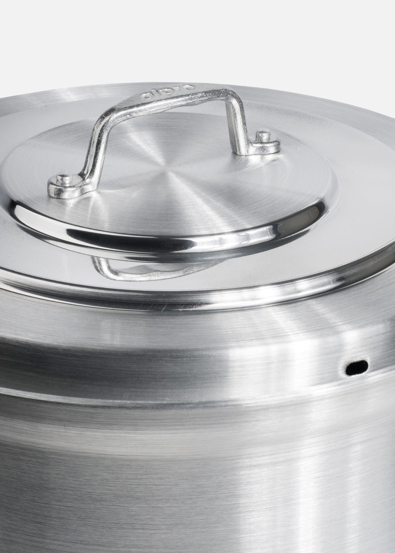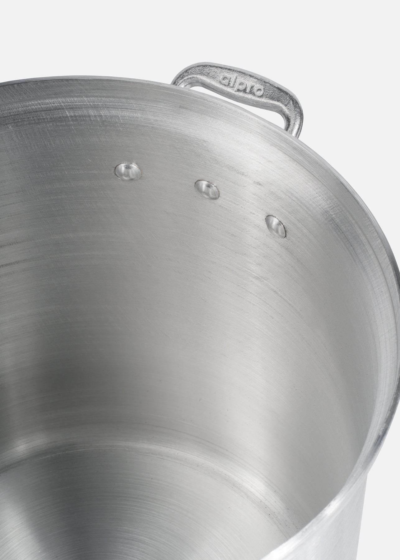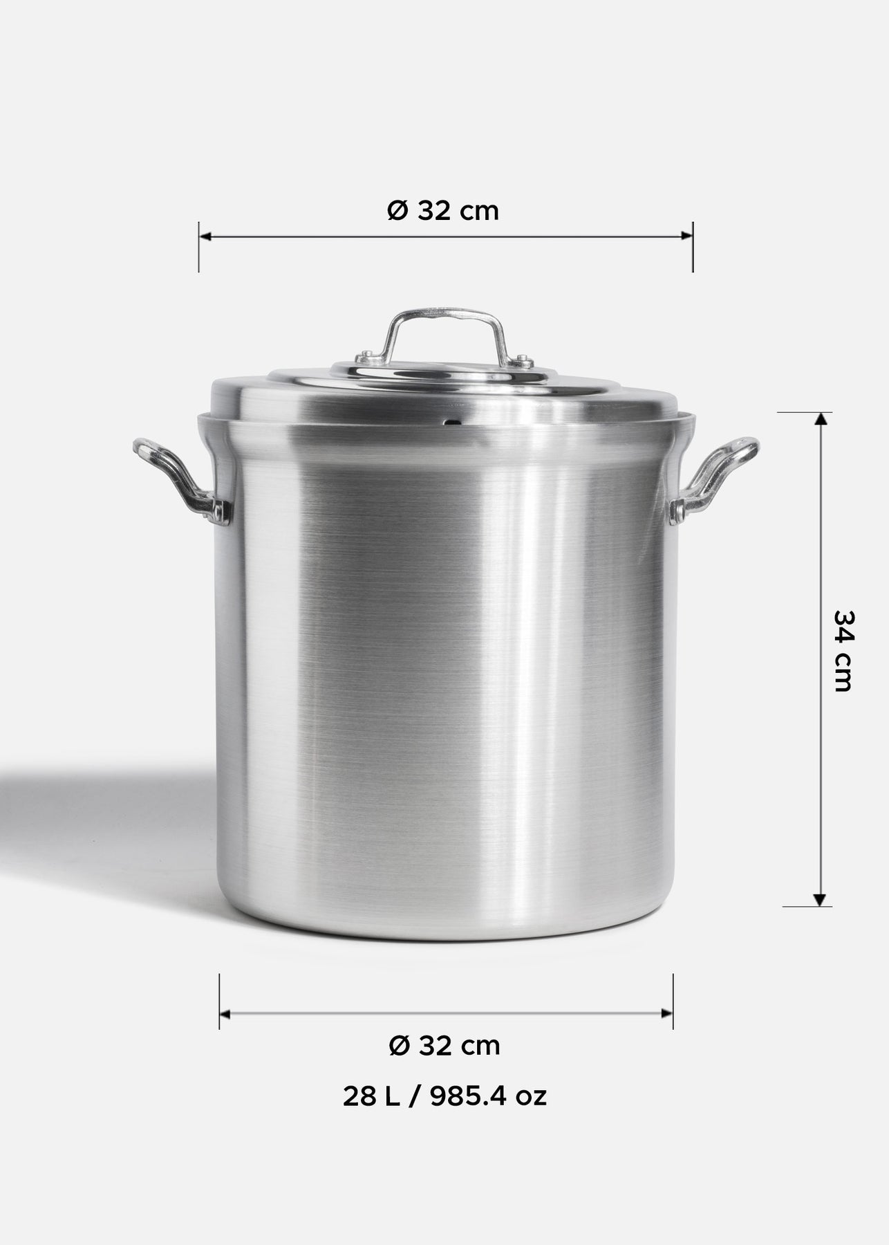 La olla con tapa de 32 L hecha de aluminio grado alimenticio es una opción profesional diseñada para soportar jornadas exigentes en cocinas industriales y restaurantes. Su estructura alta permite preparar grandes volúmenes de caldos, sopas, pastas y cocciones prolongadas sin perder eficiencia térmica, distribuyendo el calor de forma uniforme en todo el cuerpo de la olla.