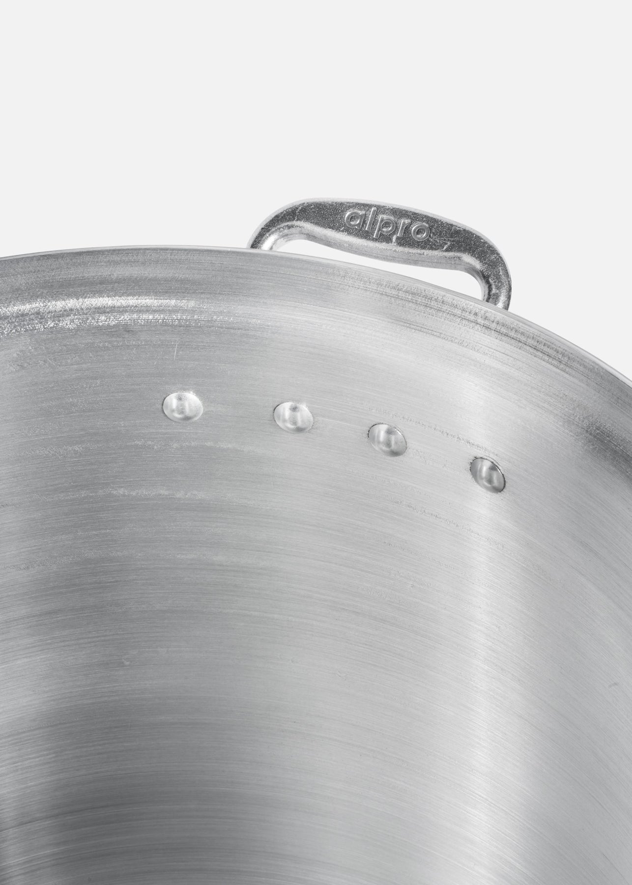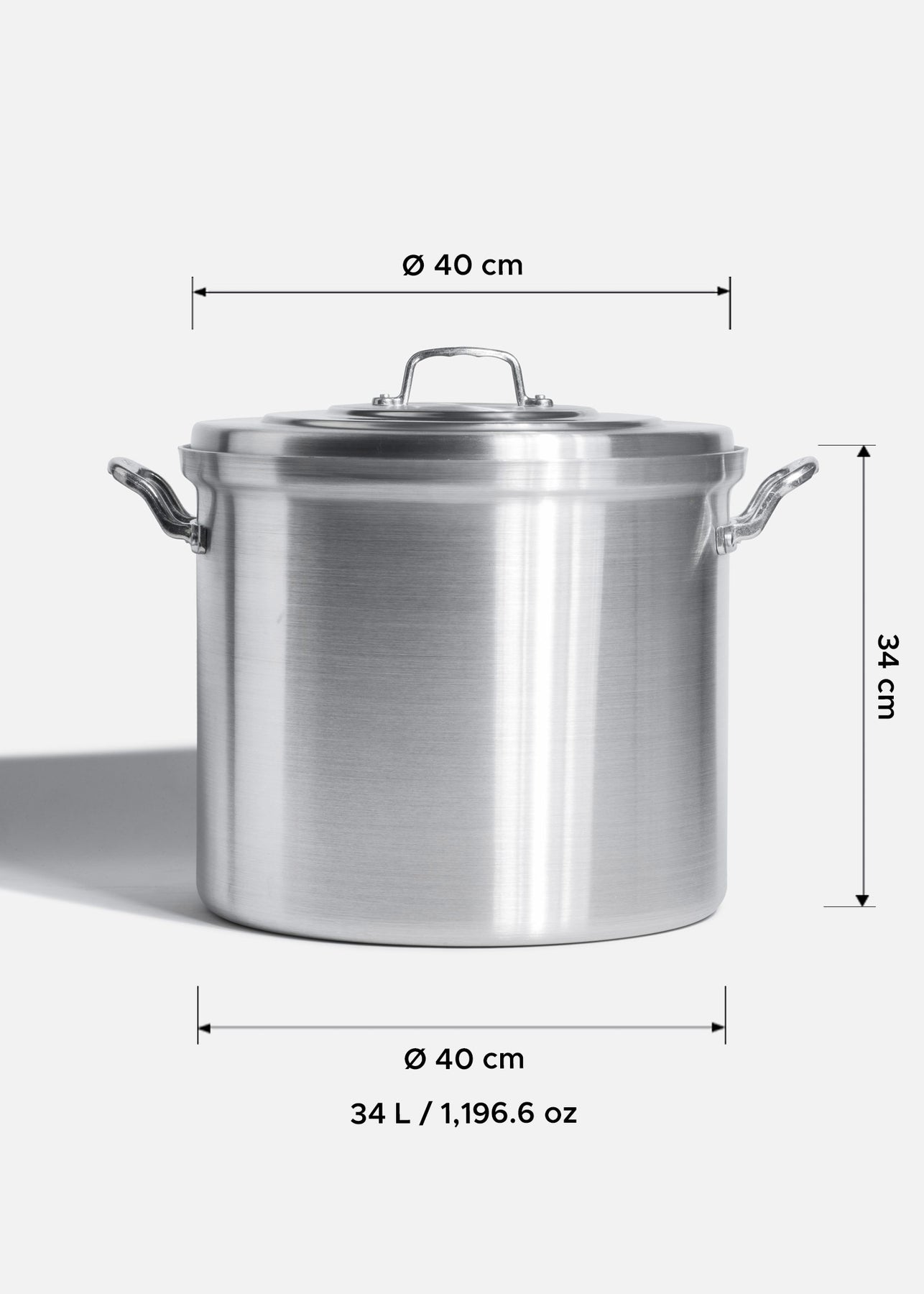 La olla con tapa de 40 L está diseñada para ofrecer un desempeño confiable en cocinas profesionales donde la capacidad y la resistencia son esenciales. Fabricada en aluminio grado alimenticio triple fuerte, distribuye el calor de manera uniforme, permitiendo cocciones eficientes incluso en grandes volúmenes. Su estructura robusta la convierte en una herramienta ideal para restaurantes, fondas y servicios de banquetería.
