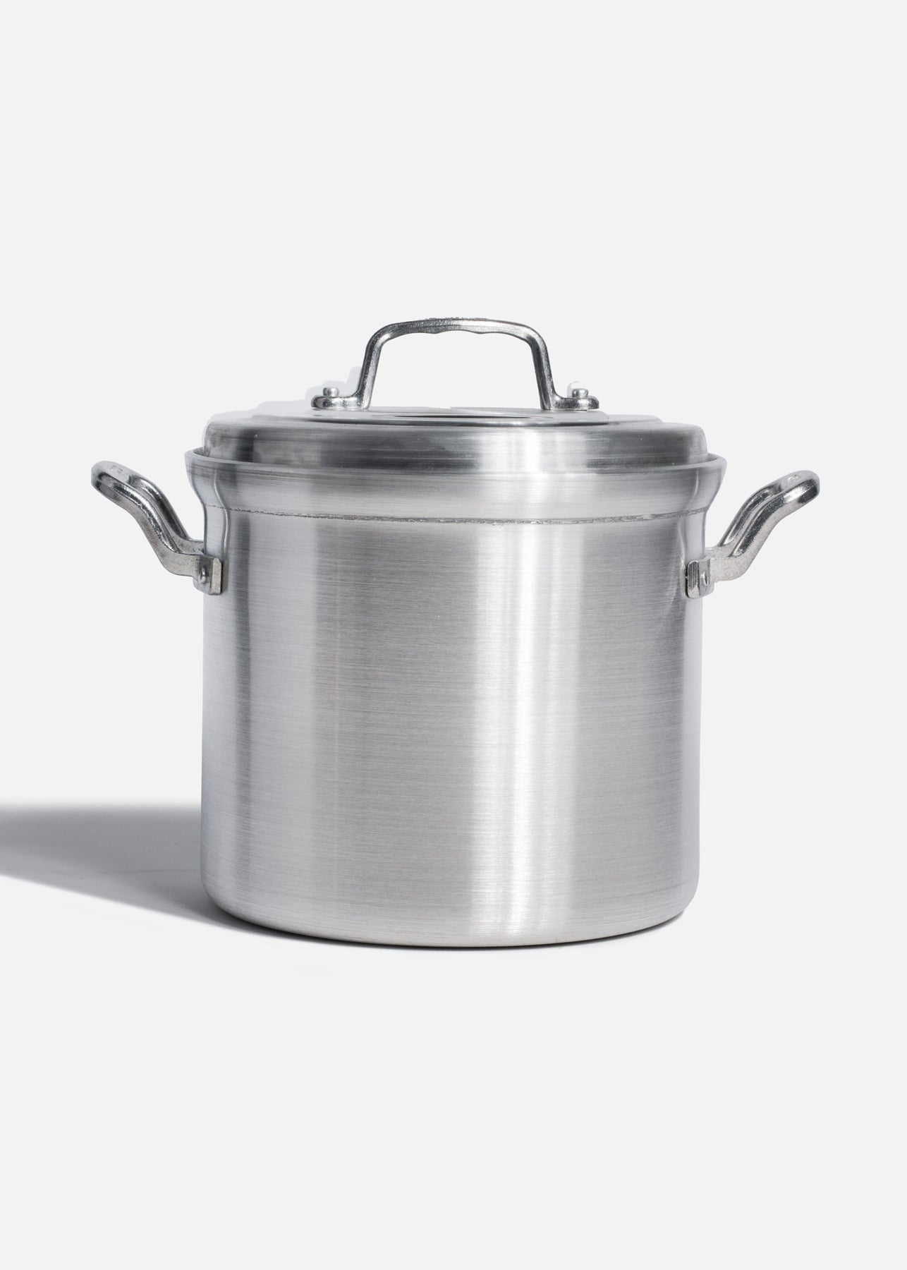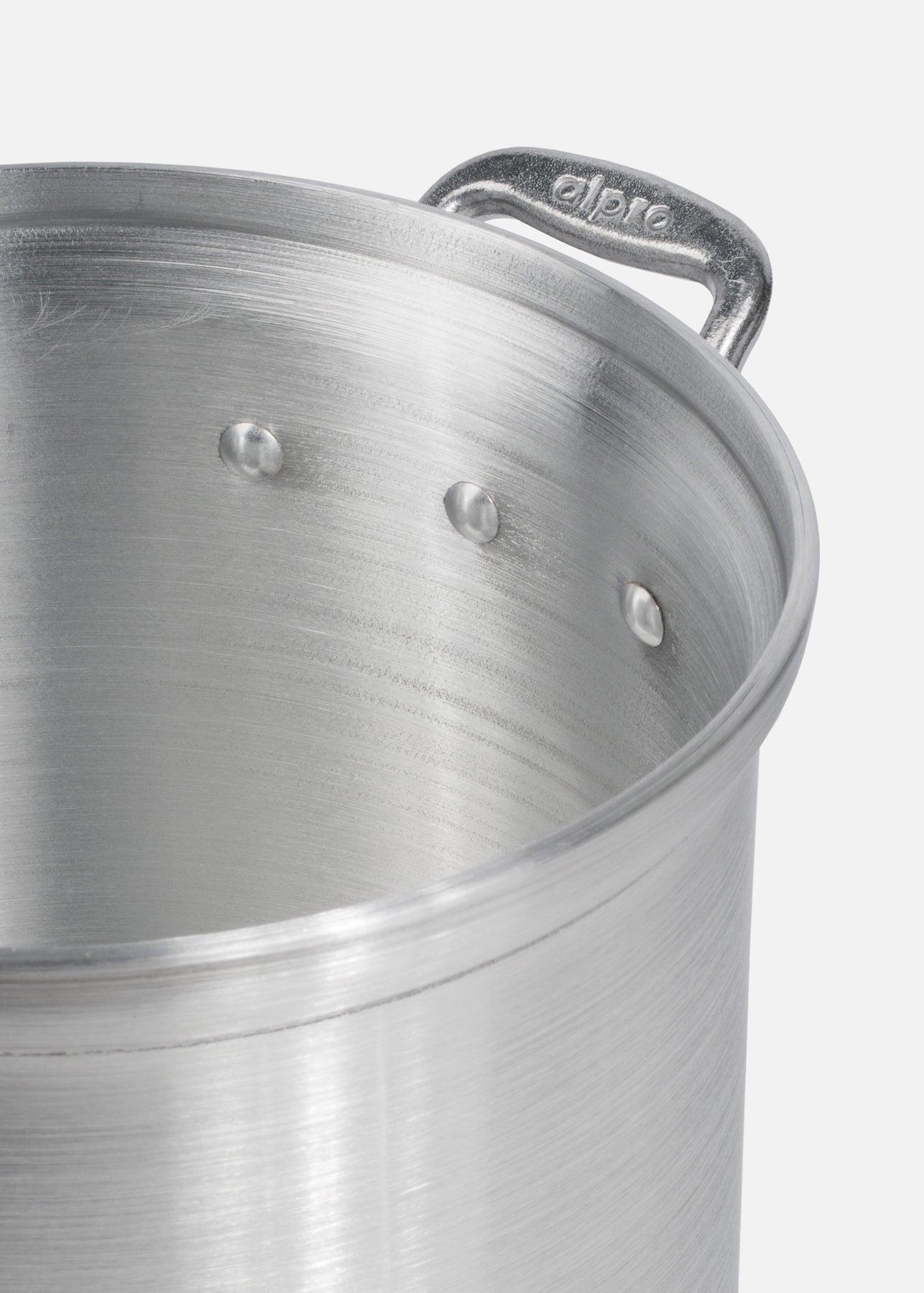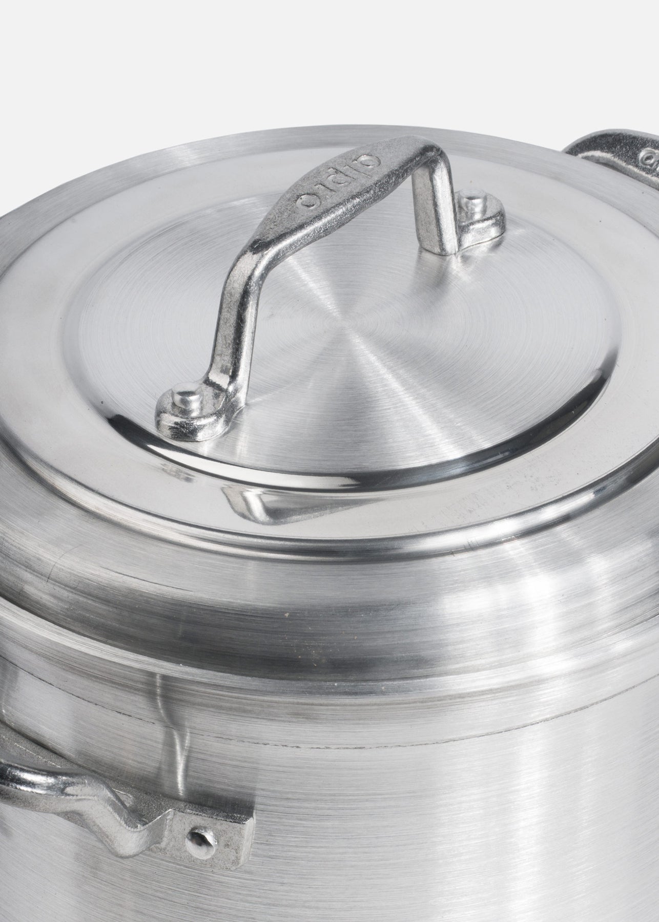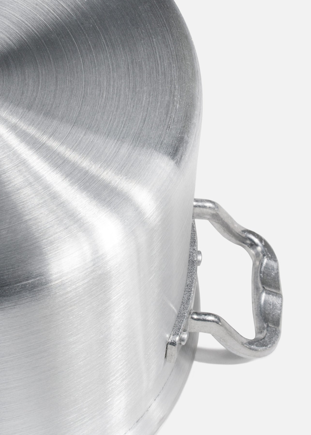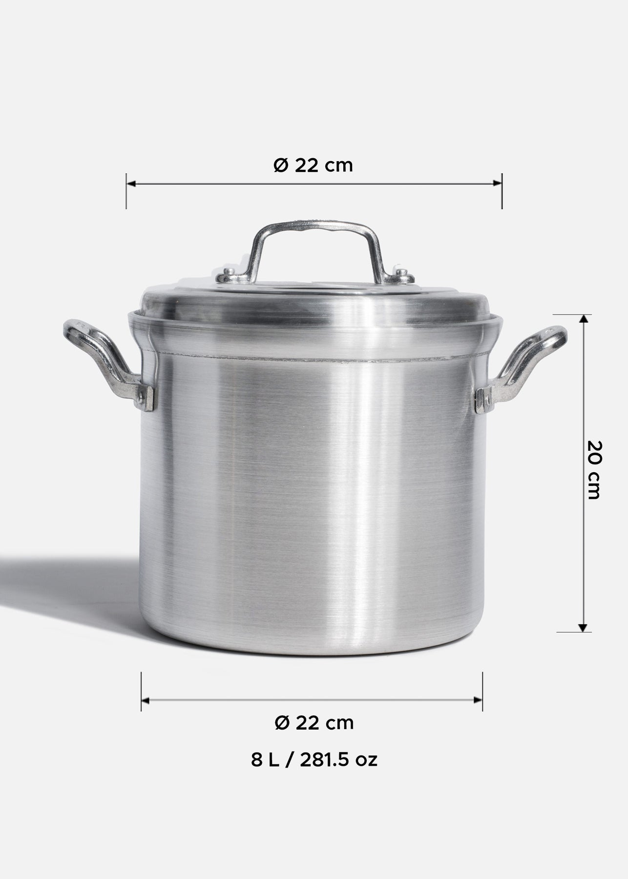La olla con tapa de 22 L fabricada en aluminio grado alimenticio está diseñada para un desempeño profesional en cocinas que requieren durabilidad, higiene y excelente conducción térmica. Su cuerpo robusto distribuye el calor de manera uniforme, lo que la vuelve ideal para caldos, cocciones prolongadas, sopas y preparaciones voluminosas sin puntos fríos.