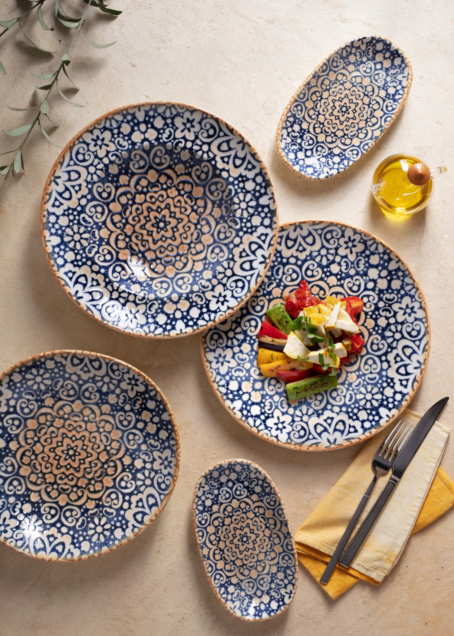 Platos hondo de porcelana azul y blanco Bursa 400 ml y 1 L