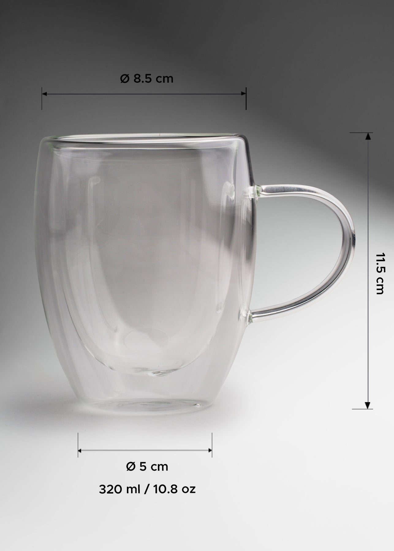 La taza de café de 320 ml combina elegancia, resistencia y funcionalidad en un solo diseño. Su estructura de doble pared mantiene la temperatura ideal por más tiempo, conservando las bebidas calientes sin quemar las manos y las frías sin condensación externa. Perfecta para disfrutar de un cappuccino o té con estilo y comodidad.
