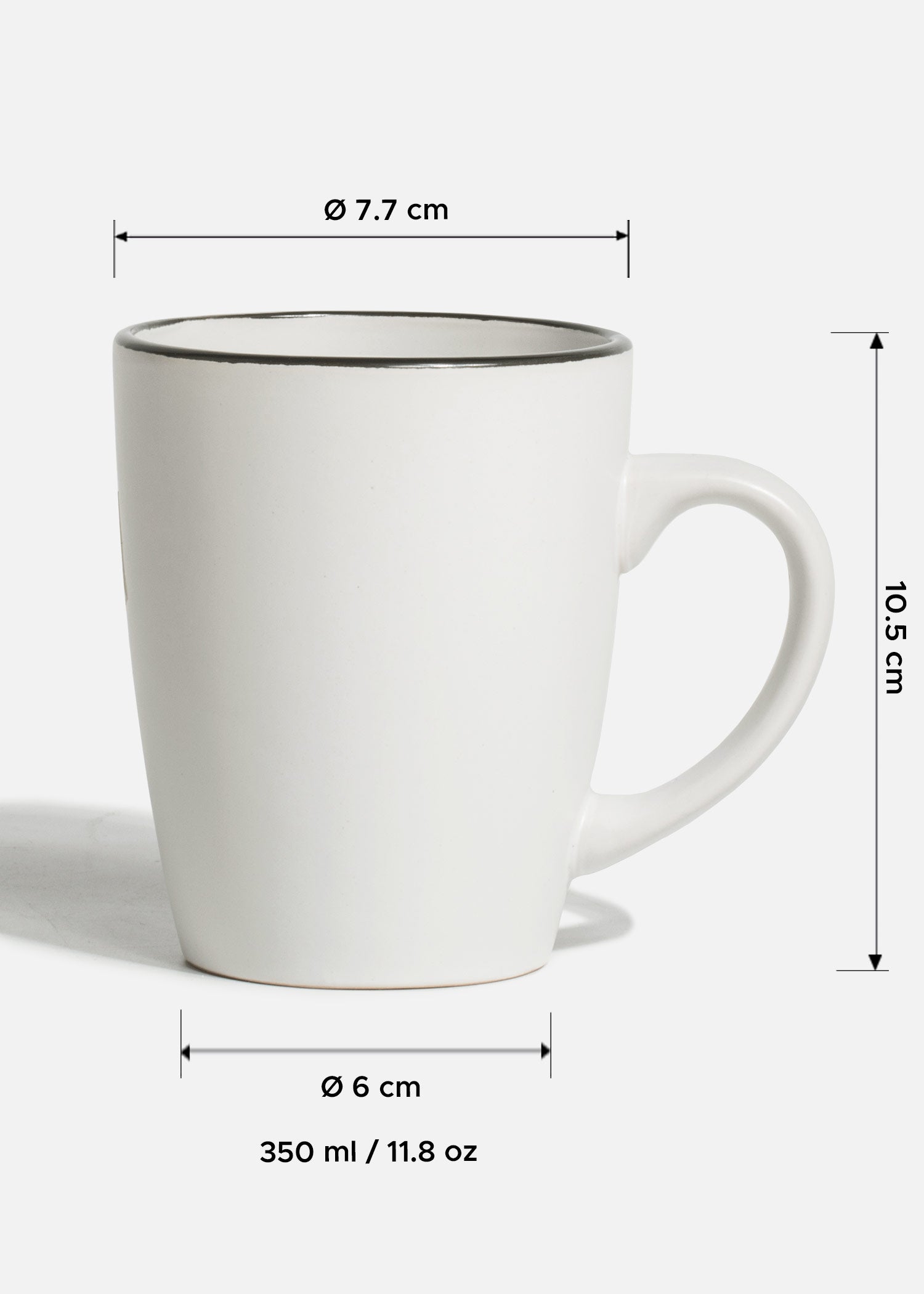 Taza de cerámica blanco con filo negro 350 ml