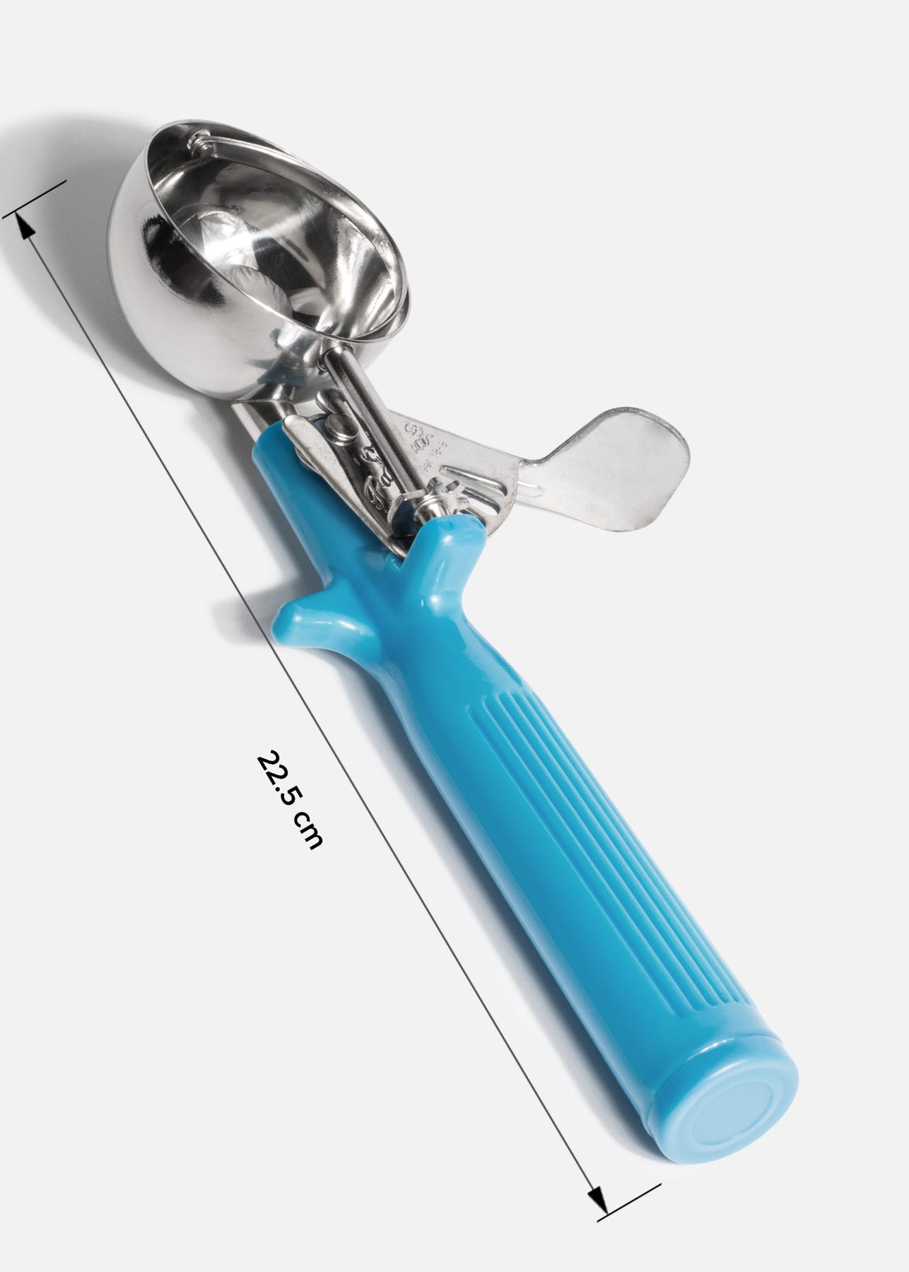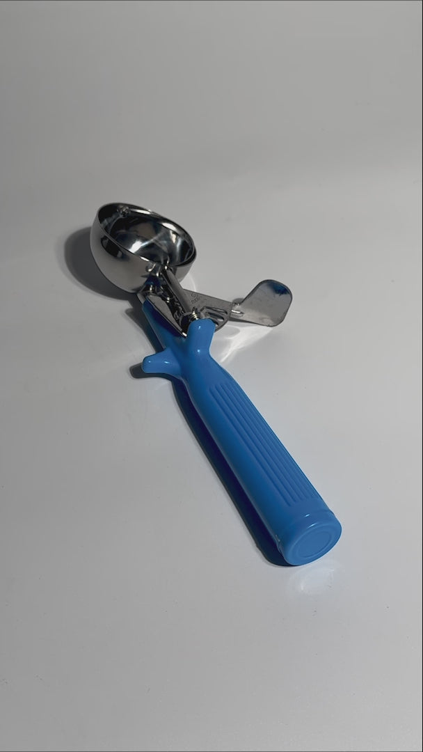 La cuchara para helado está diseñada para ofrecer precisión, durabilidad y facilidad de uso en entornos profesionales. Su estructura metálica de alta calidad con certificación NSF garantiza higiene y resistencia incluso con uso continuo, mientras que su mango ergonómico en color azul proporciona un agarre firme y cómodo.